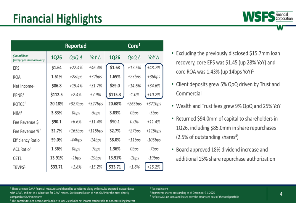 WSFS: базовая прибыль на акцию выросла на 49%, возврат капитала превысил доход